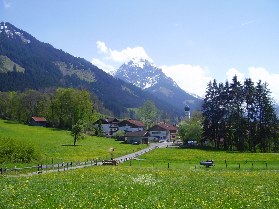 Vom südlichen Ortrand aus können Sie den ganzen Oberstdorfer Talkessel mit der Kette seiner Allgäuer Berggipfel betrachten. Genießen Sie hier die Ruhe und den Flair unseres Dorfes, ohne auf die Vorteile der nahe gelegenen Hauptorte (Oberstdorf, Fischen oder Sonthofen) zu verzichten.